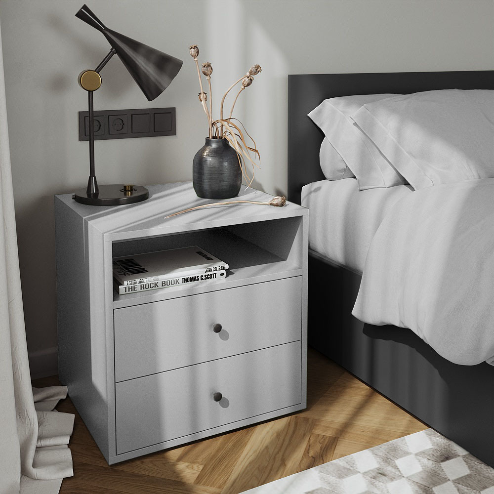 Tủ đầu giường không chỉ là nơi đặt đèn ngủ, sách hay điện thoại mà còn là điểm nhấn giúp phòng ngủ trở nên sang trọng hơn. Một chiếc tủ nhỏ gọn, có ngăn kéo tiện lợi sẽ giúp nàng dễ dàng cất giữ những vật dụng cá nhân. Chọn tông màu nhẹ nhàng như trắng, be hoặc gỗ tự nhiên sẽ giúp không gian phòng ngủ thêm phần ấm áp và tinh tế.