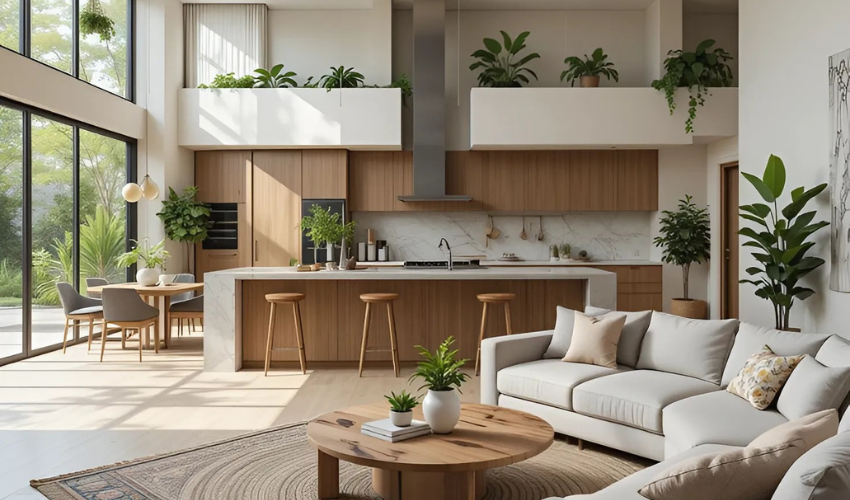 Sự phân bổ ánh sáng tự nhiên hợp lý còn giúp tạo nên sự khác biệt trong từng khu vực chức năng của ngôi nhà. Phòng bếp sẽ trở nên ấm áp nhờ ánh sáng mềm mại, phòng ngủ được thiết kế tránh ánh sáng trực tiếp gây chói, còn phòng làm việc nhận ánh sáng giúp tăng sự tập trung và kích thích sáng tạo.