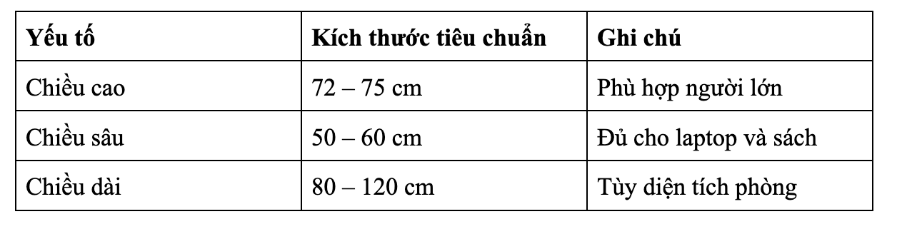 Tiêu chuẩn kích thước bàn học MDF
