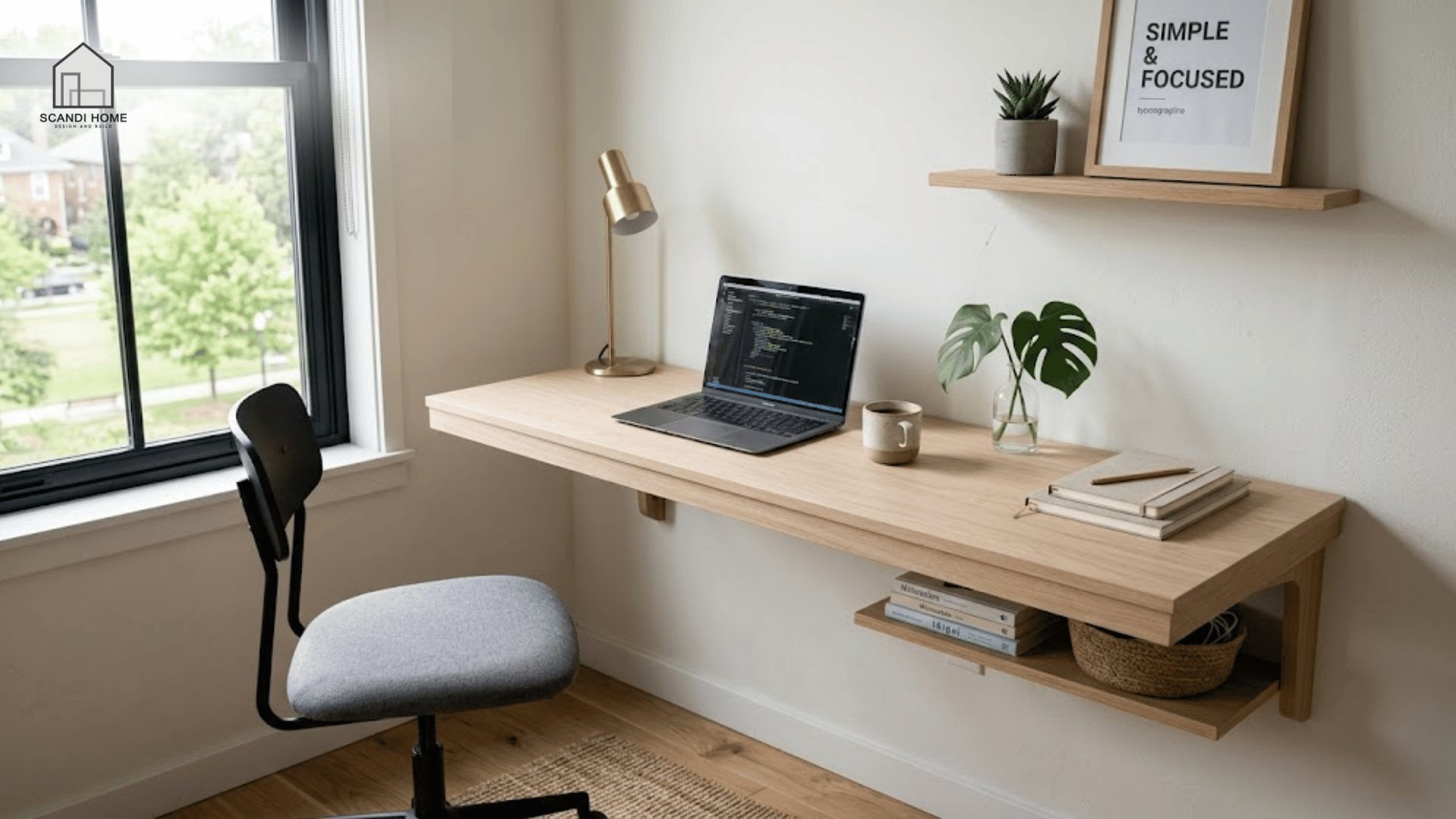 Thiết kế này loại bỏ hoàn toàn chân bàn, giúp không gian trở nên thoáng và hiện đại hơn đáng kể, đặc biệt phù hợp với phong cách hiện đại hoặc Scandinavian, đồng thời vẫn đảm bảo đầy đủ công năng học tập và làm việc cơ bản