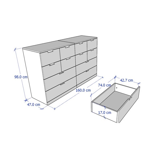 Kích thước: 160x47x98cm(Ngang x Sâu x Cao)