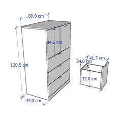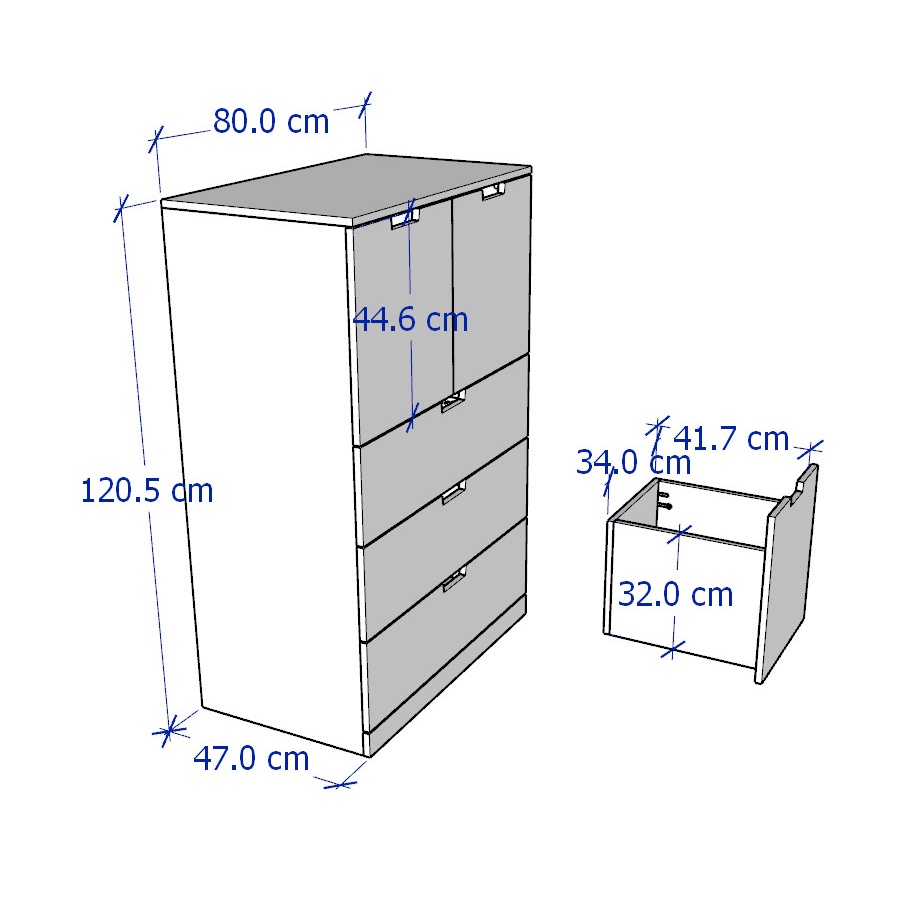 Kích thước: 80x47x121cm (Ngang x Sâu x Cao)