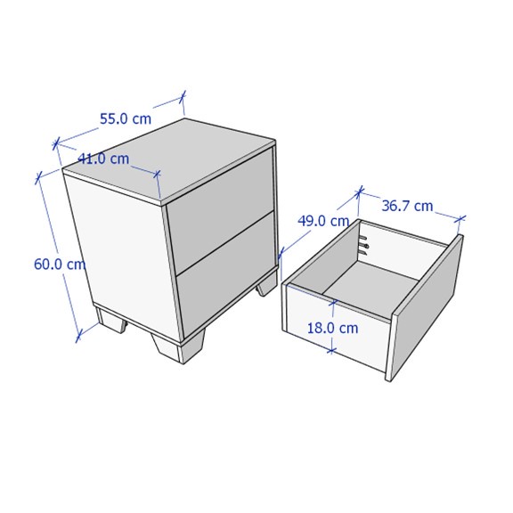 BECKVILLE, Táp đầu giường 2 ngăn kéo DRA_123, 55x41x60cm