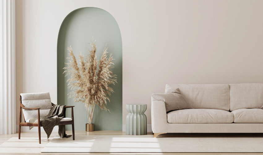 Đặt nội thất dọc theo tường có thể khiến phòng khách trông dài và hẹp hơn. Thay vào đó, hãy đặt sofa ở góc hoặc dọc một bức tường để tạo điểm nhấn, đồng thời chọn kích thước phù hợp với diện tích phòng.