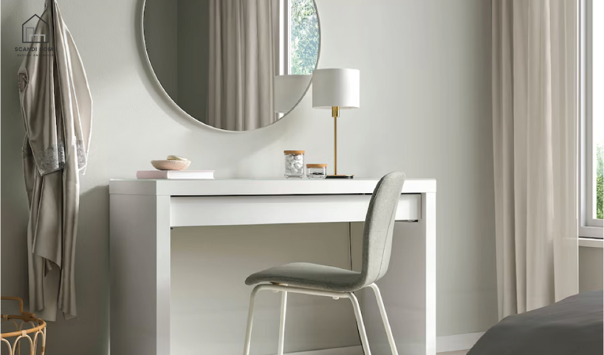 Khi đặt cạnh cửa sổ hoặc góc tường, bàn trang điểm tạo nên góc sinh hoạt nhỏ đầy cảm hứng. Sự kết hợp giữa ánh sáng tự nhiên và chất liệu gỗ mộc mạc giúp căn phòng luôn tươi mới - đúng tinh thần nội thất hiện đại mà nhiều gia đình đang hướng đến.