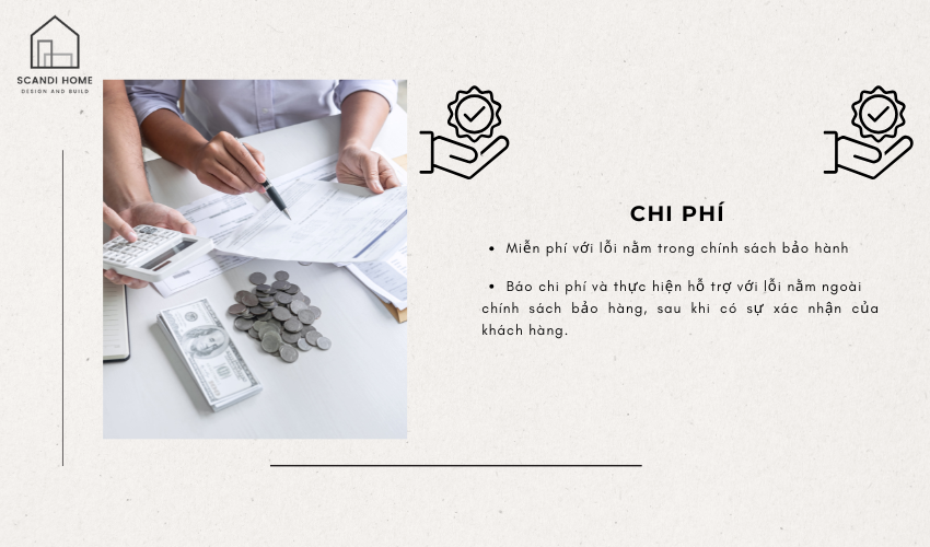 Với các lỗi nằm trong chính sách bảo hành, Scandi Home hỗ trợ hoàn toàn miễn phí, không phát sinh thêm chi phí nào. Đội ngũ kỹ thuật sẽ xử lý tận nơi hoặc thu hồi sản phẩm nếu cần. Trong trường hợp lỗi ngoài phạm vi bảo hành, chúng tôi vẫn tiếp nhận thông tin, báo giá cụ thể và chỉ xử lý khi có sự đồng ý từ bạn. Mọi chi phí đều được thông báo rõ ràng, không có phát sinh ngoài ý muốn.