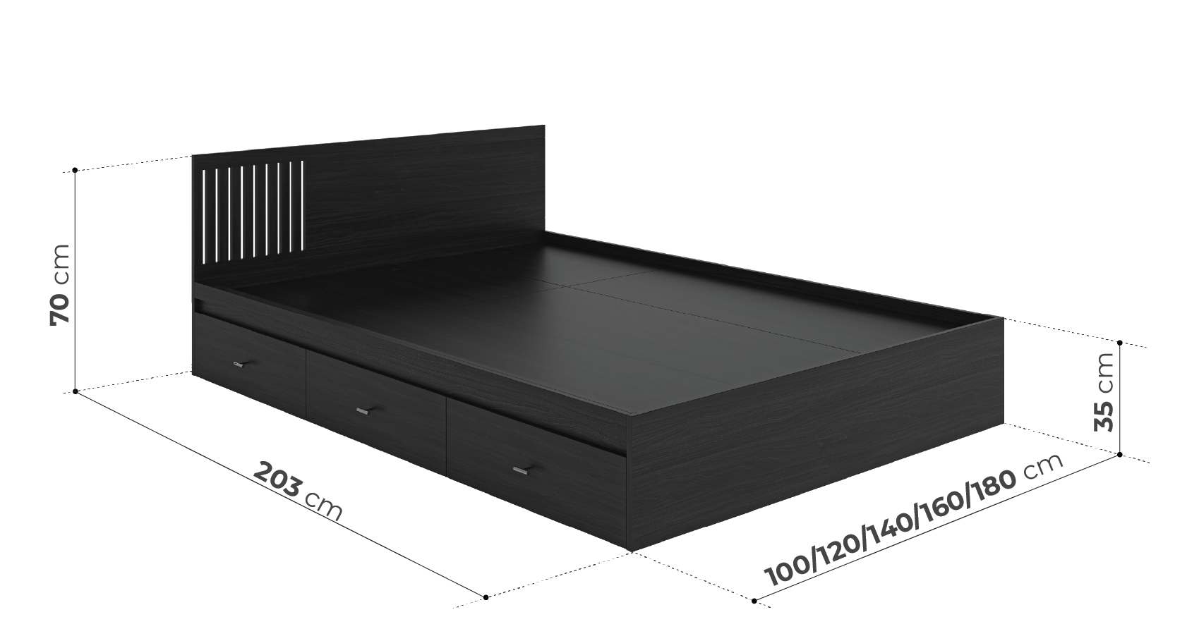 RAMUS, Giường ngủ 3 hộc tủ kéo BED_101, 203x70cm