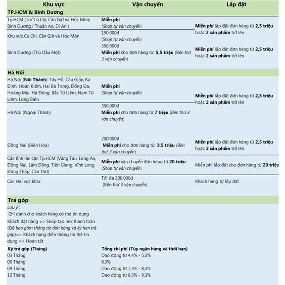• Miễn phí vận chuyển và lắp đặt cho đơn nội thành TPHCM.