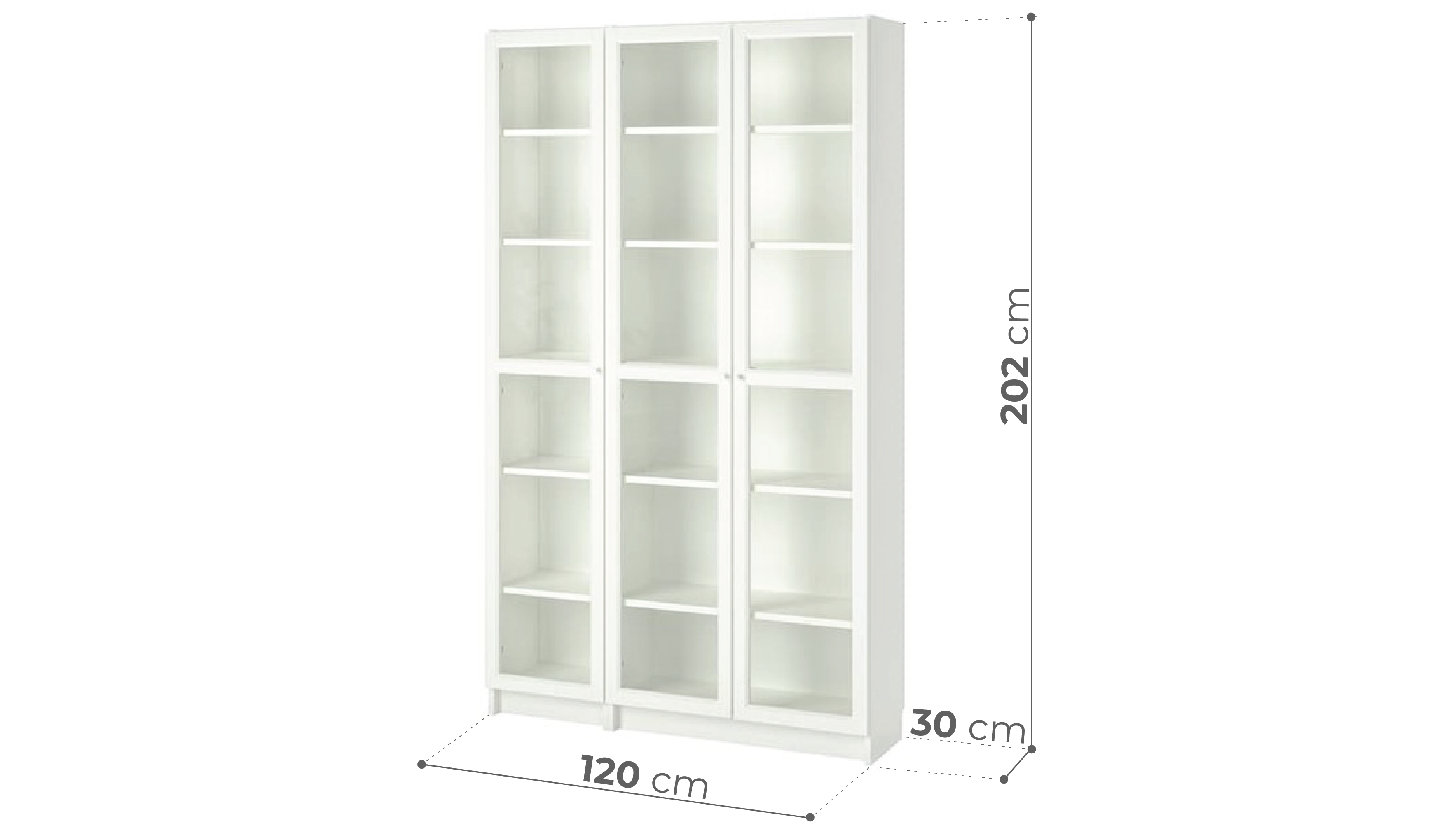JELLY, Kệ sách 2 gian 6 tầng cửa kính SHE_041, 120x30x202cm