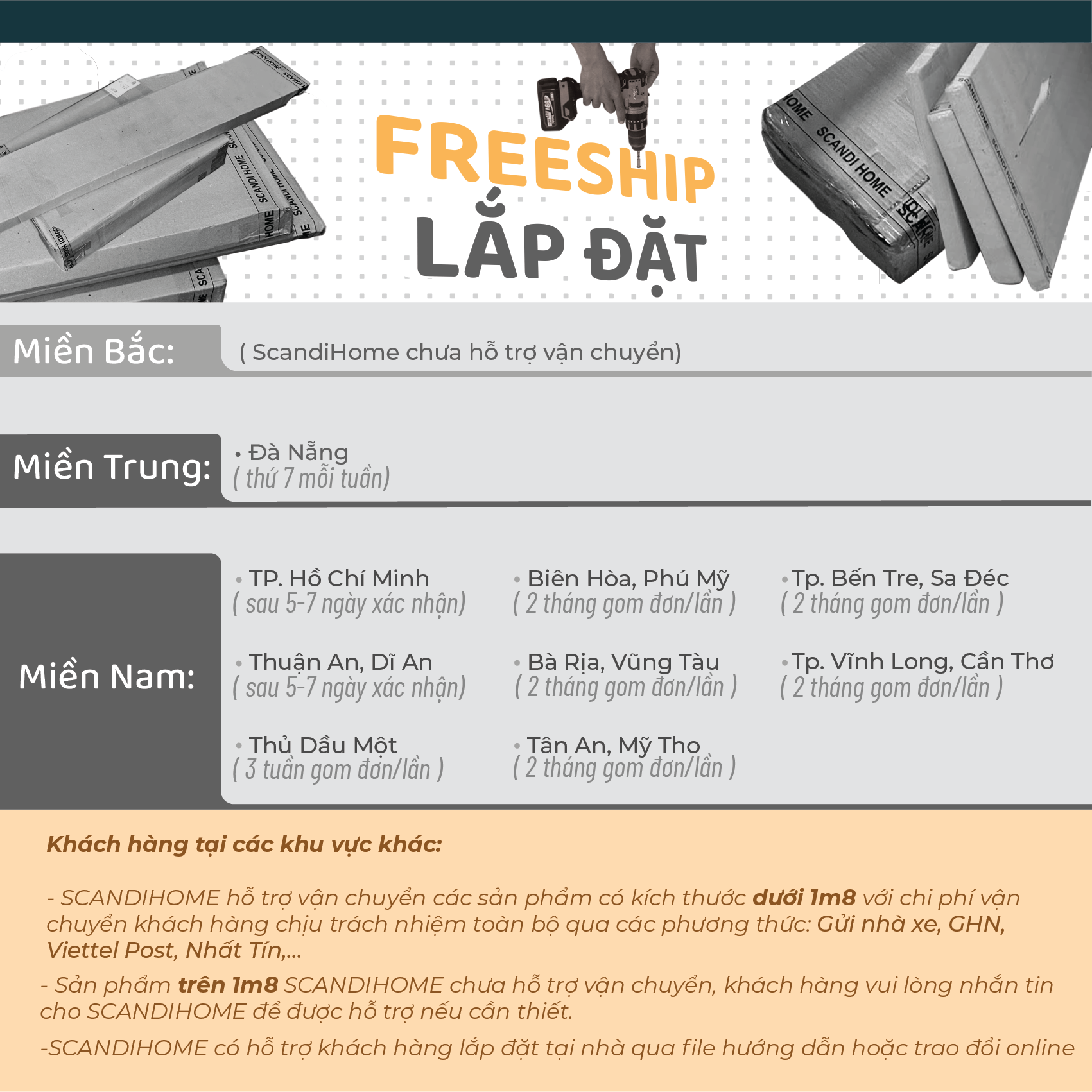 ScandiHome chưa hỗ trợ vận chuyển và lắp đặt