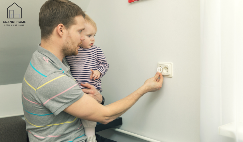 Ngoài ra, các ổ điện trong nhà cần được che bằng nắp an toàn. Dây điện phải được thu gọn hoặc gắn sát tường để tránh trường hợp bé nghịch phá. Những chi tiết tưởng chừng nhỏ này lại đóng vai trò quan trọng trong việc xây dựng môi trường an toàn cho trẻ.