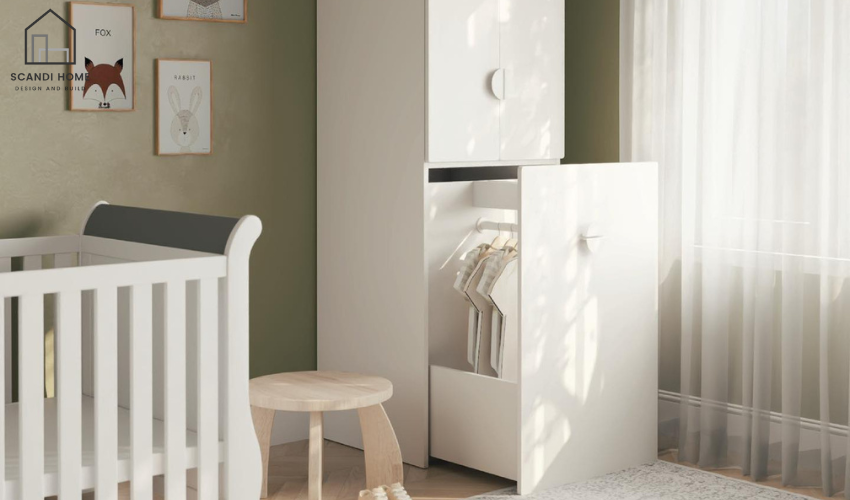 Tủ gỗ sáng màu, bo tròn các cạnh và tay nắm an toàn là ưu tiên hàng đầu. Ngoài ra, bạn nên chọn loại có cửa lùa thay vì cửa mở nếu diện tích phòng nhỏ tránh trường hợp bé mở cửa mạnh gây va đập. Việc sử dụng tủ phù hợp từ sớm cũng là cách tạo nền tảng cho thói quen sống tự lập và ngăn nắp sau này.