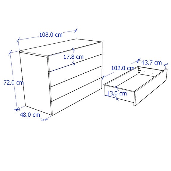 NOVA, Tủ đựng đồ lưu trữ 4 ngăn kéo size lớn DRA_075, 108x48x72cm