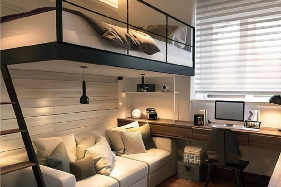 Nhờ những thiết kế linh hoạt, căn phòng của bạn vẫn sẽ đáp ứng đầy đủ nhu cầu sinh hoạt mà không bị bí bách, thậm chí còn tạo cảm giác gọn gàng và nhẹ nhàng hơn khi sống lâu dài.