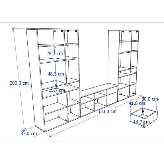 Kích thước: 330x37x200cm(Ngang x Sâu x Cao)