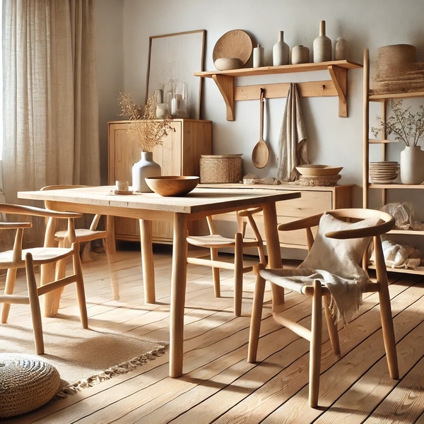 Nội thất gỗ, đặc biệt là gỗ sồi hoặc thông, là đặc trưng nổi bật trong thiết kế Scandinavian. Từ bàn ghế, kệ sách đến sàn nhà, chất liệu gỗ tự nhiên mang lại cảm giác mộc mạc, gần gũi nhưng không kém phần sang trọng.