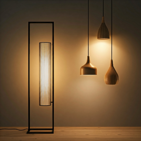 Ánh sáng nhân tạo cũng rất quan trọng trong phong cách này. Chọn các loại đèn treo, đèn sàn hoặc đèn bàn với thiết kế tối giản, màu sắc trung tính hoặc chất liệu kim loại, gỗ.