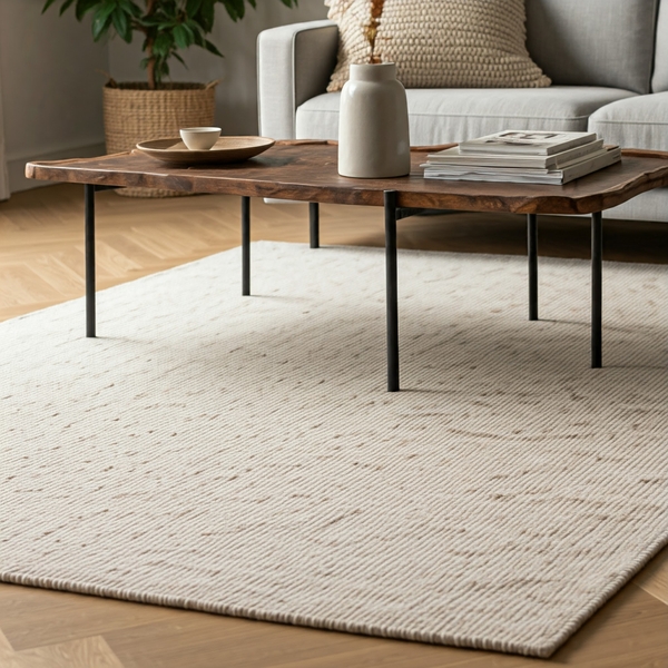 Thảm lông ngắn hoặc các loại vải mềm như len, cotton giúp tăng thêm độ ấm cúng cho không gian. Đặt thảm dưới bàn trà hoặc sofa là cách hiệu quả để phân chia không gian trong nhà.
